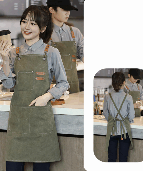 Tạp dề canvas dày dặn, chống thấm nhẹ