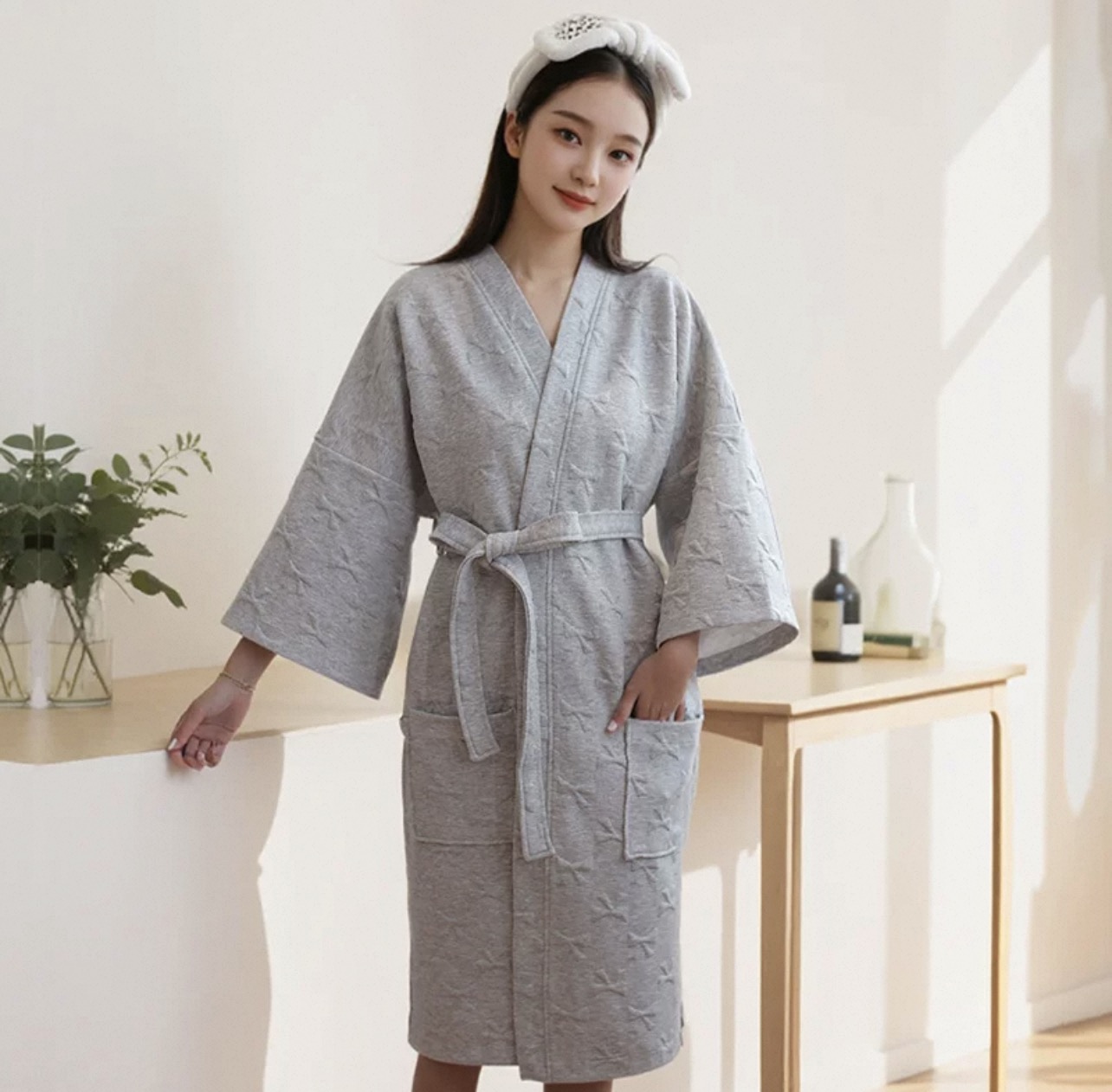 Áo Choàng Spa Cotton Mềm Cao Cấp – Áo Khoác Spa Thẩm Mỹ Viện Dài 80cm