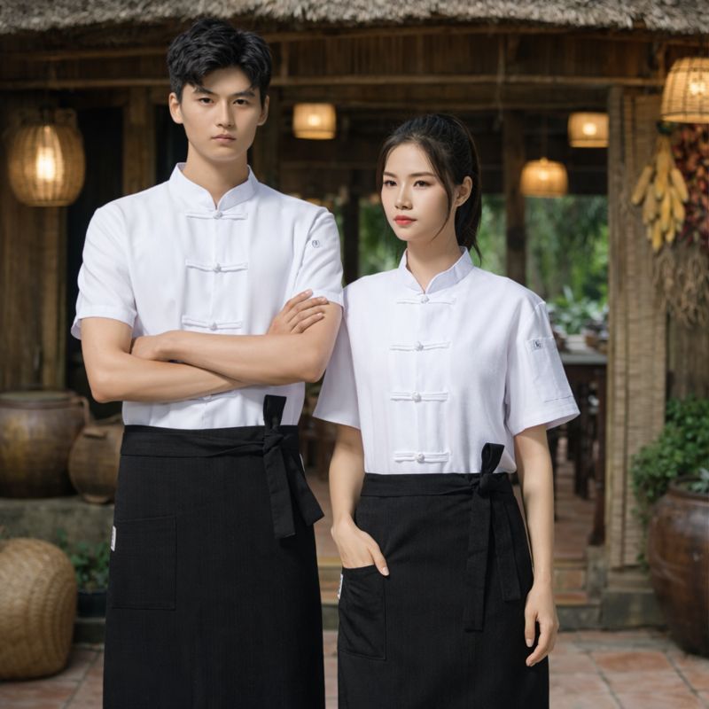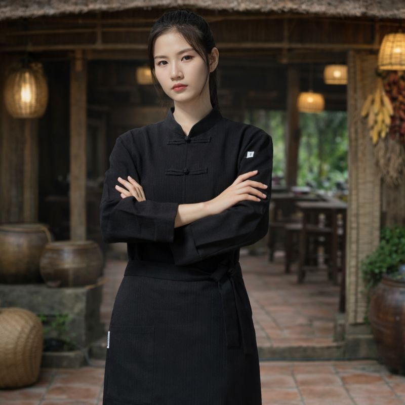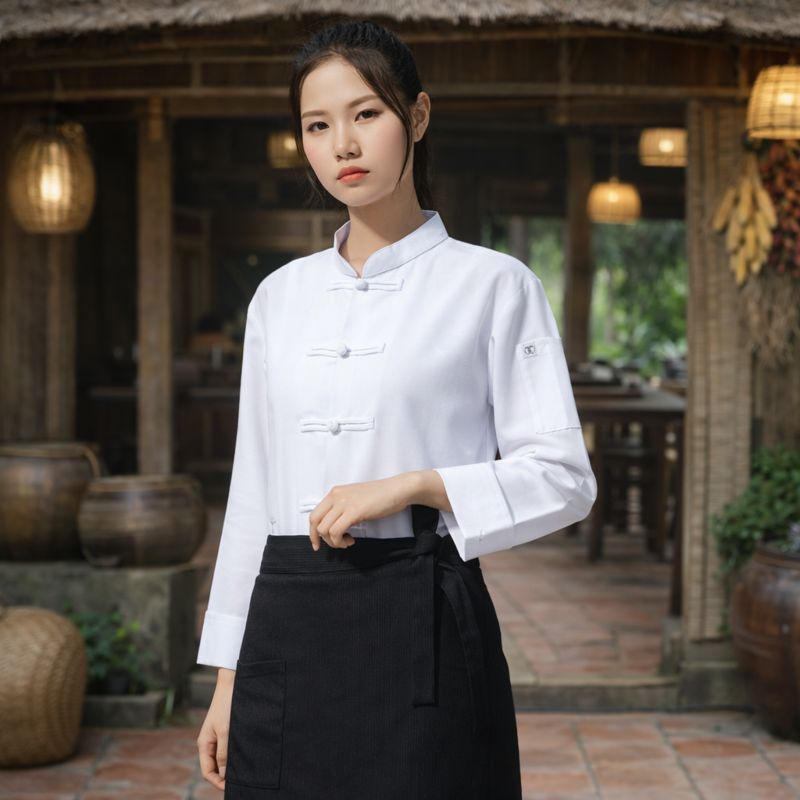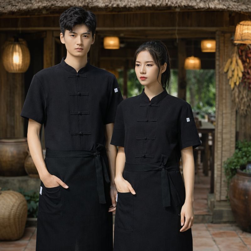 - Kiểu dáng: Áo đồng phục phục vụ nhà hàng phong cách Á Đông