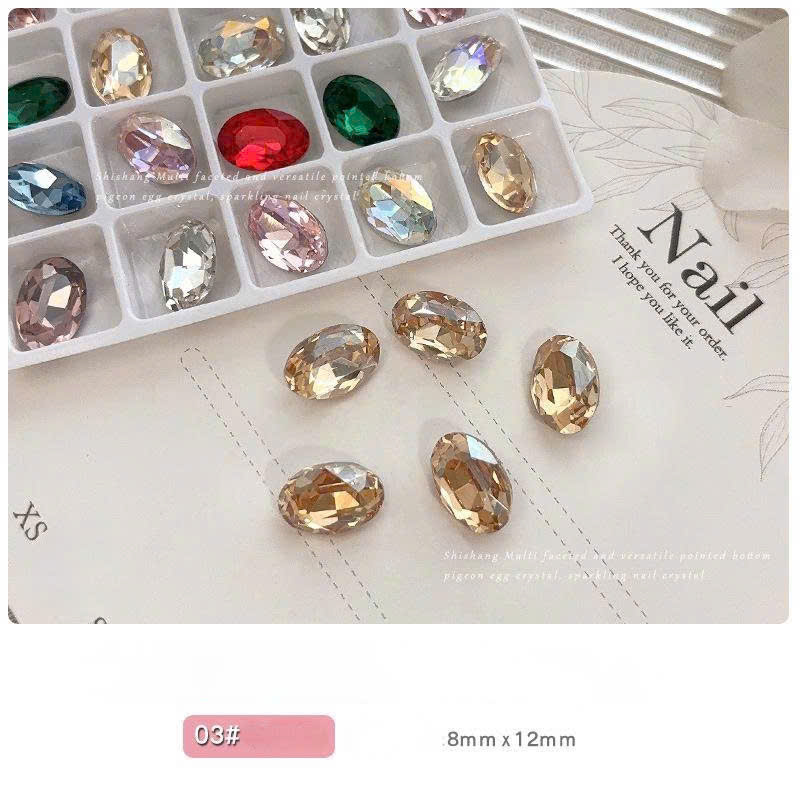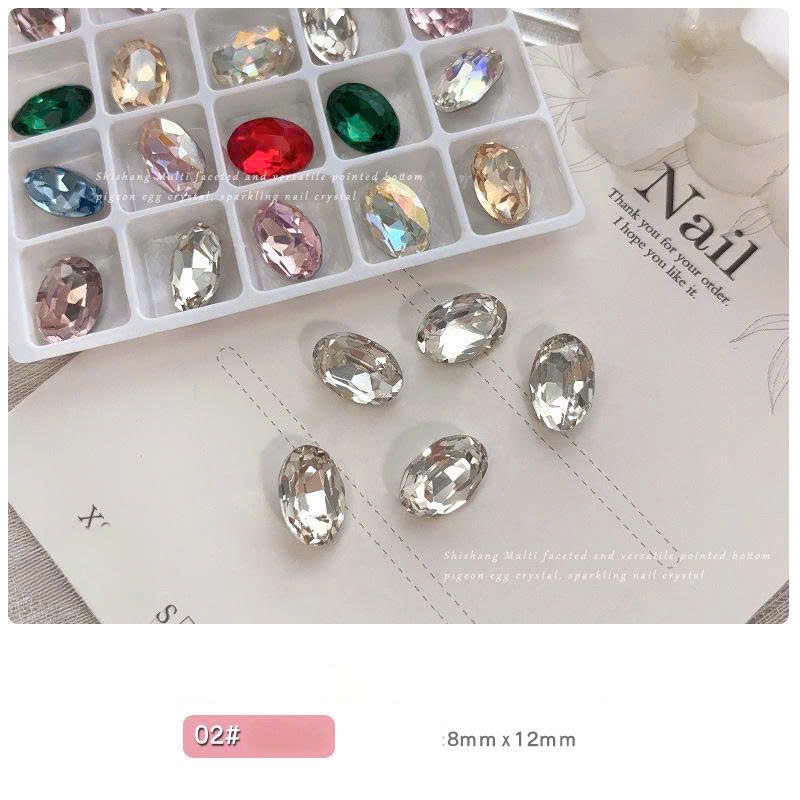 • Tên sản phẩm: Phụ kiện trang trí móng tay hình trứng chim bồ câu (khối đá hình giọt nước/oval bầu).