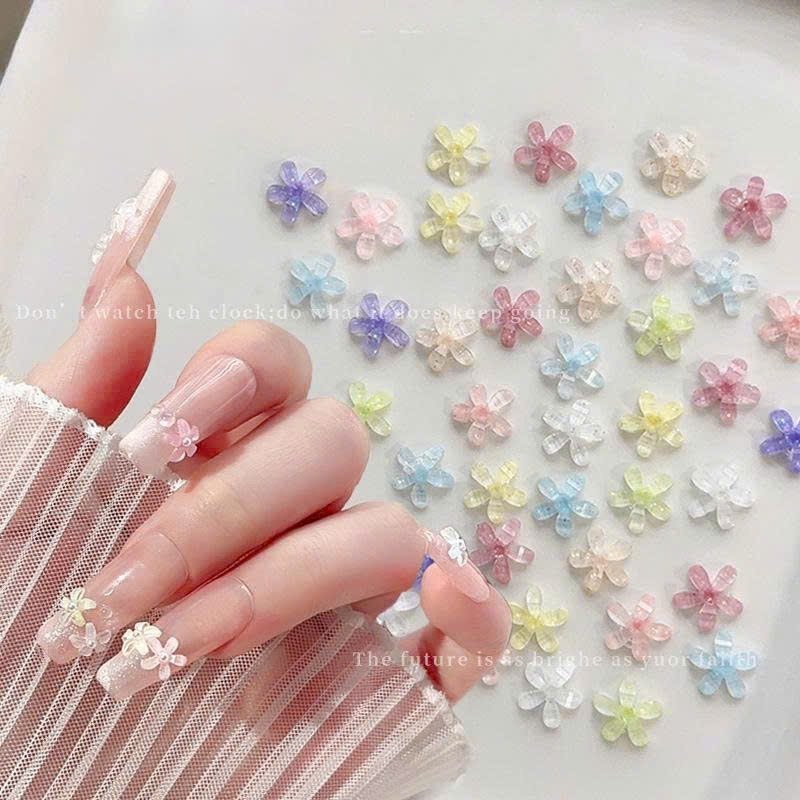 Set charm hoa 5 cánh nail 3D với thiết kế nhỏ xinh, màu sắc pastel nhẹ nhàng, giúp bộ móng trở nên nổi bật, nữ tính và thu hút hơn. Phù hợp với nhiều phong cách nail như tiểu thư, trong veo, nhẹ nhàng hoặc phong cách Hàn Quốc.