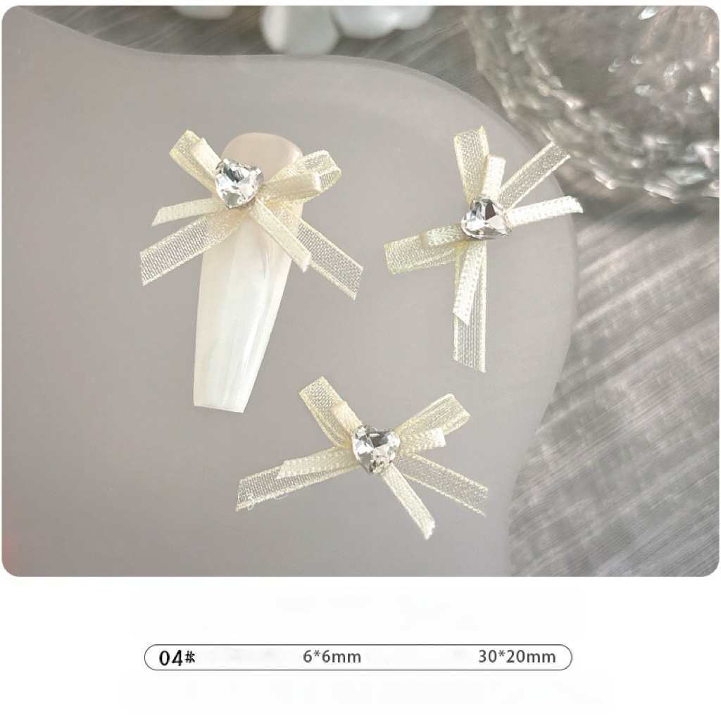Charm thiết kế hình nơ từ vải voan organza mềm mại, tạo hiệu ứng bồng bềnh tự nhiên với kiểu dáng 2 lớp tinh tế. Kết hợp chi tiết kim loại nhỏ ở trung tâm giúp tăng độ nổi bật và tạo điểm nhấn sang chảnh cho bộ móng.