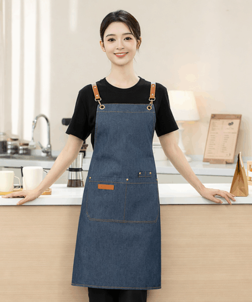 Tạp dề yếm jean phối da cao cấp, thiết kế denim cá tính