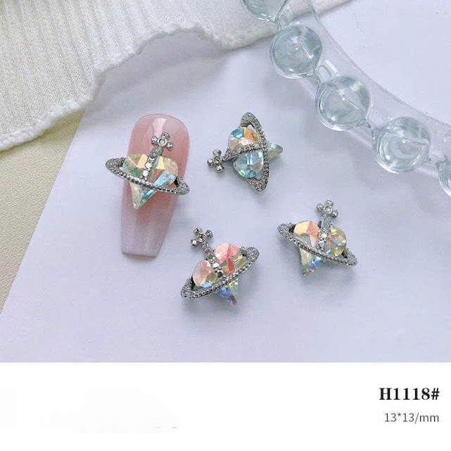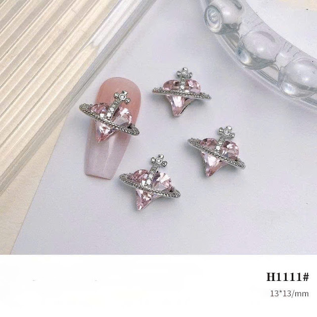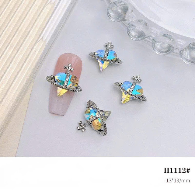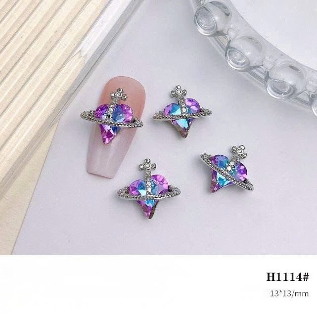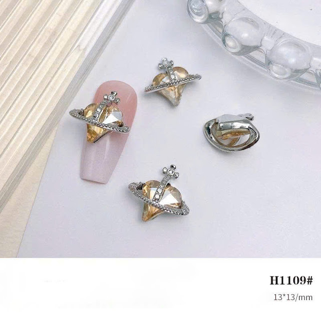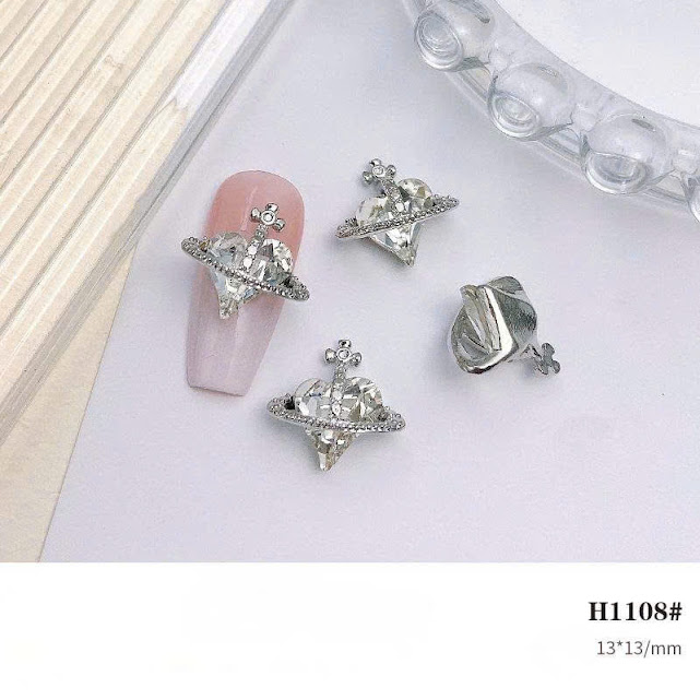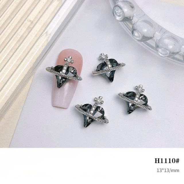 Đá đính móng trái tim đen bạc cổ điển