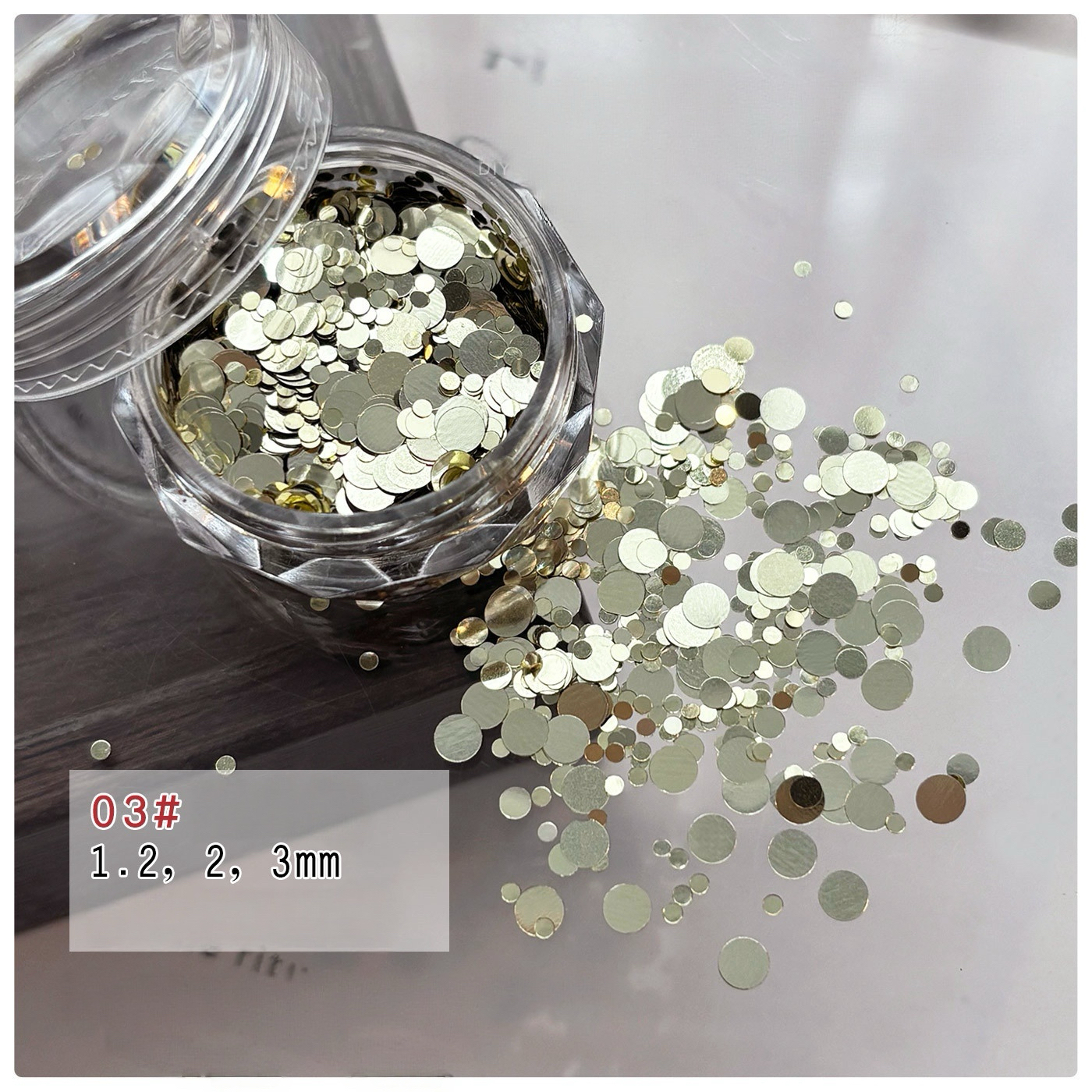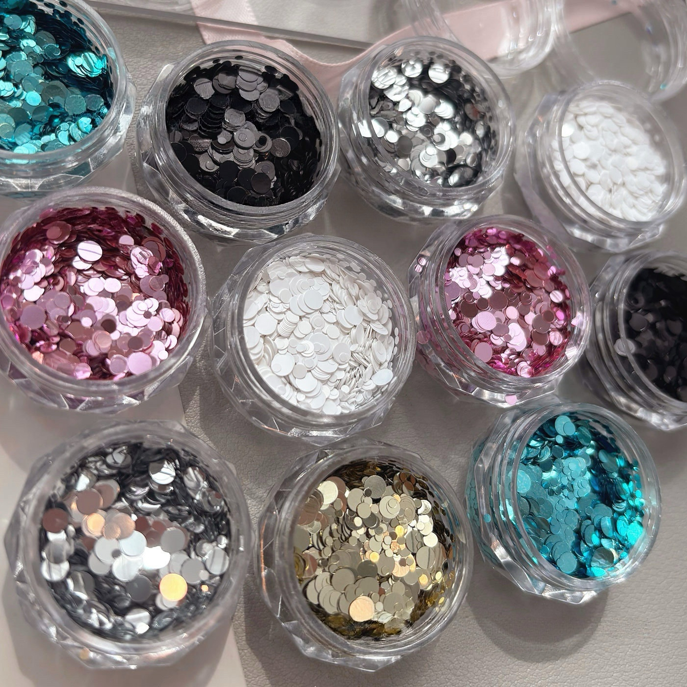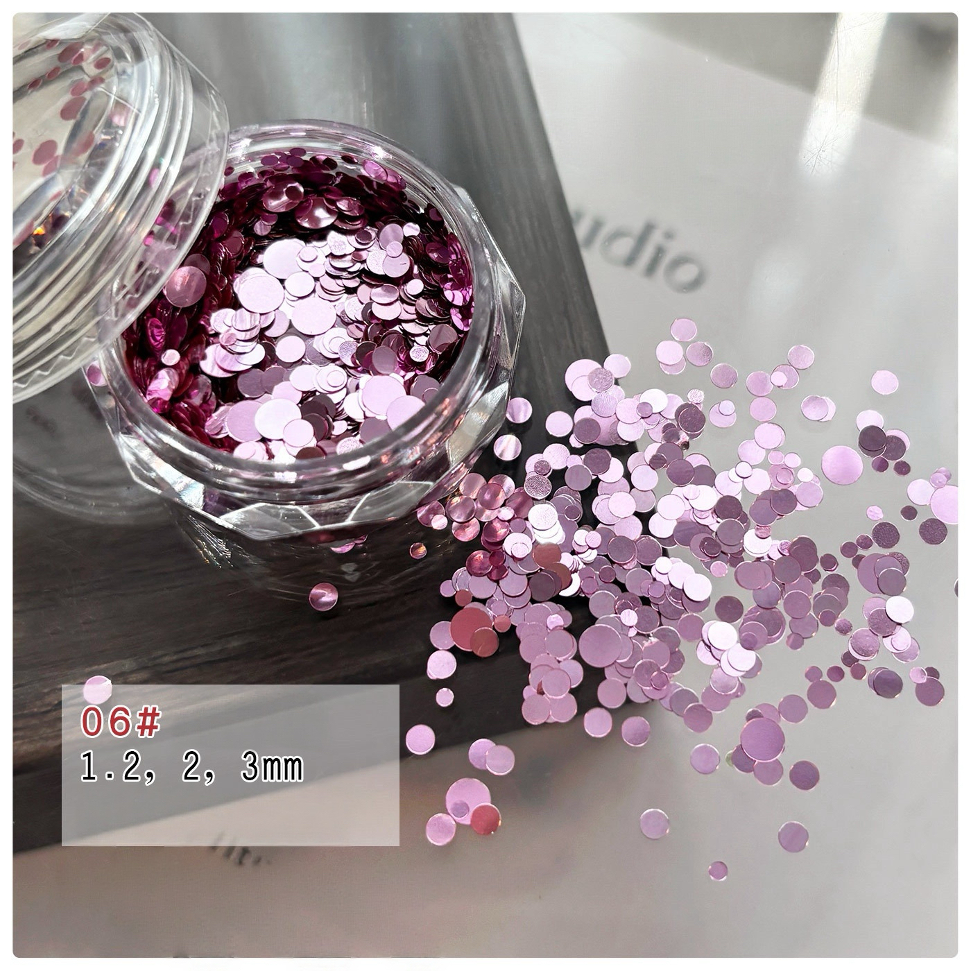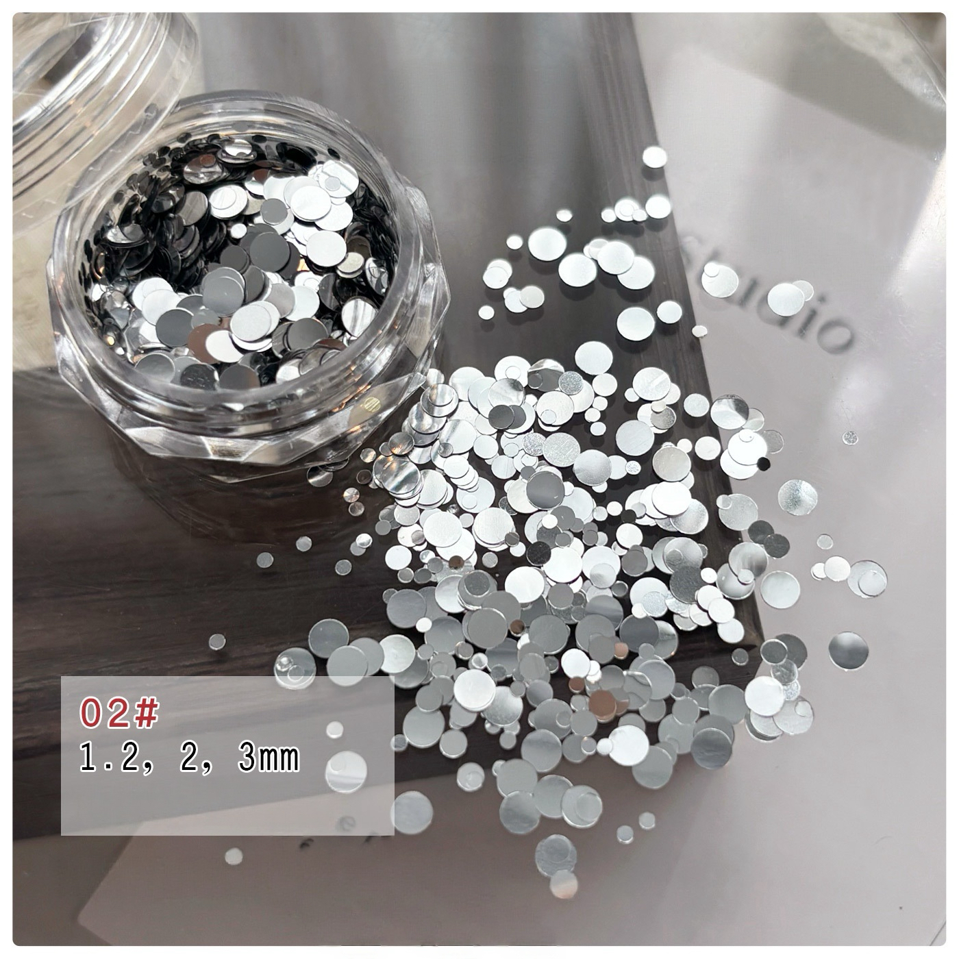 Sequin nail dạng hình tròn lấp lánh giúp tạo hiệu ứng bắt sáng nổi bật cho bộ móng. Các hạt sequin có bề mặt ánh kim và phản quang đẹp, khi kết hợp với gel hoặc top sẽ tạo hiệu ứng lung linh, sang trọng và thu hút.