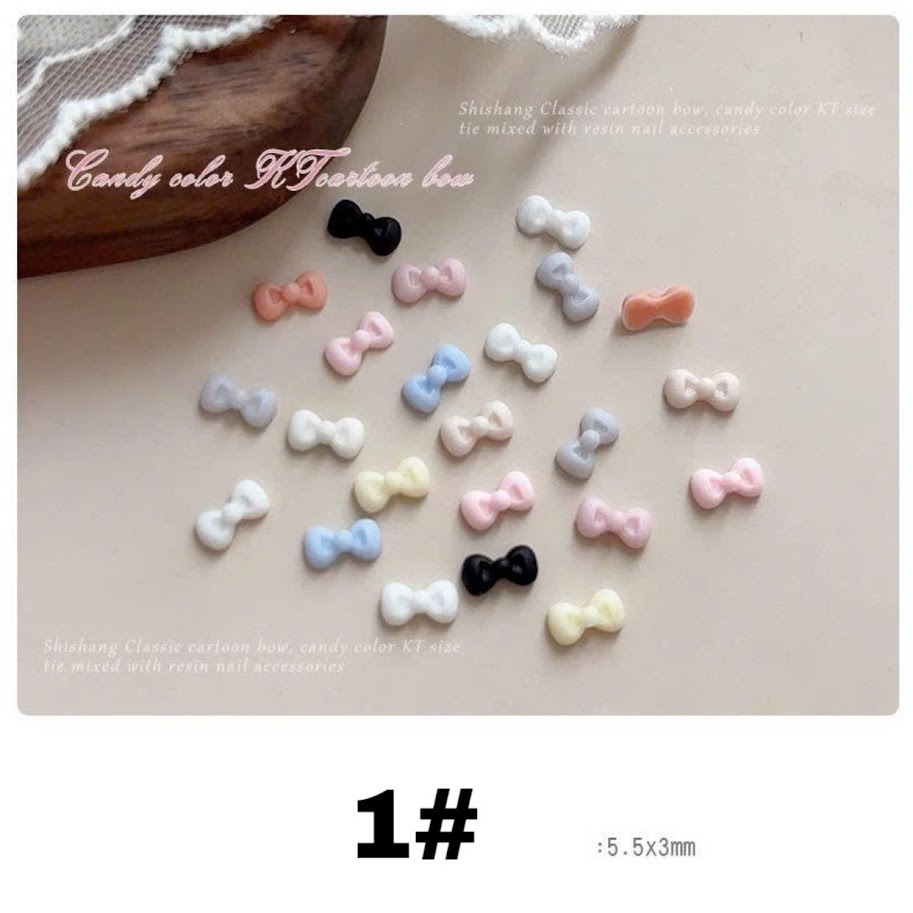 Sản phẩm có nhiều màu như trắng, đen, hồng, xanh… cùng 2 size nhỏ và lớn, phù hợp với nhiều form móng khác nhau. Thiết kế mini giúp dễ dàng đính lên móng mà không gây cấn hay nặng tay, tạo hiệu ứng trang trí tự nhiên nhưng vẫn nổi bật.