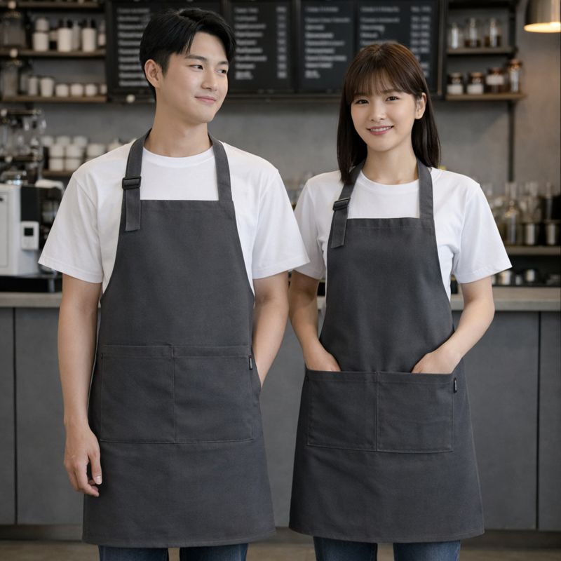 Tạp dề spa/đồng phục phục vụ dáng dài – Chất liệu kaki bền đẹp – Thiết kế tối giản, chuyên nghiệp