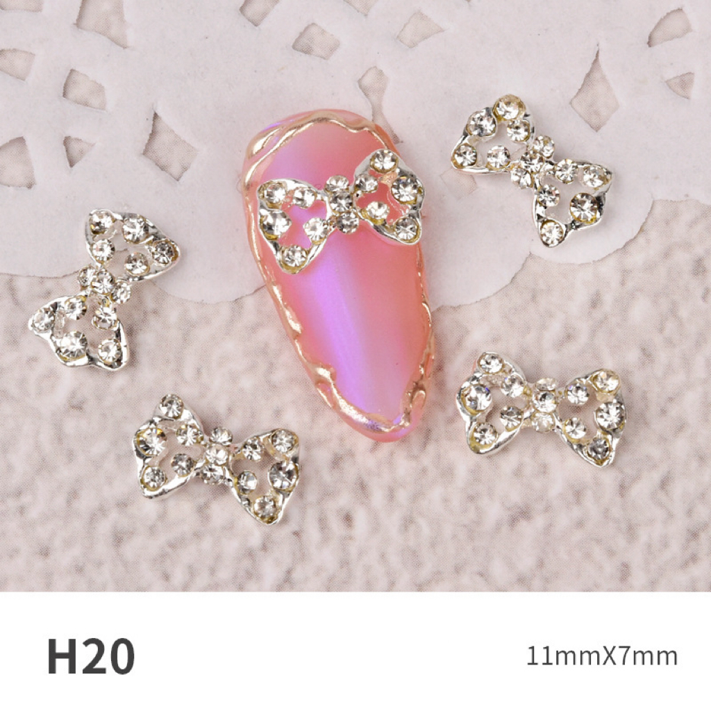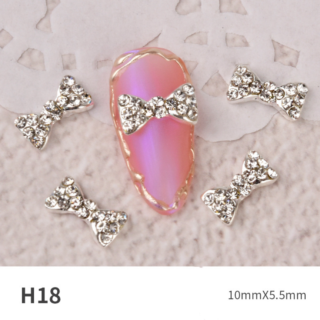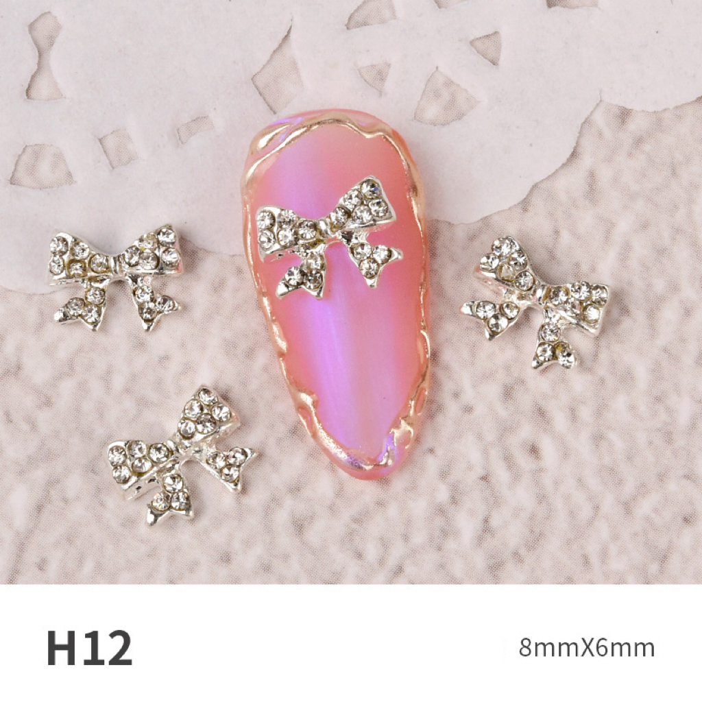 Charm nơ trang sức làm móng đính rhinestone – phụ kiện nail kim loại siêu lấp lánh