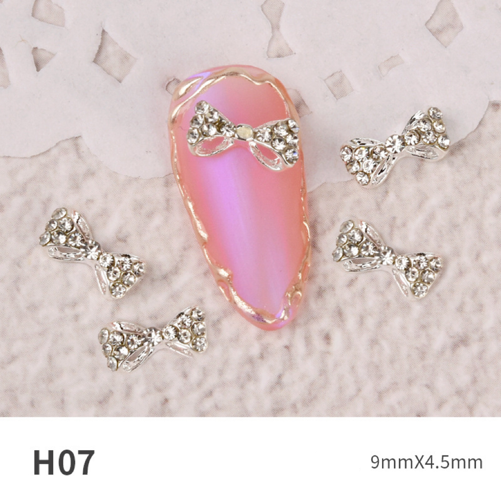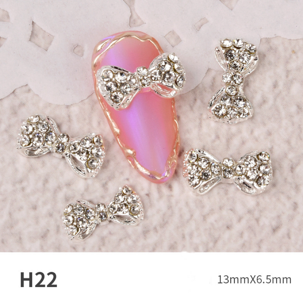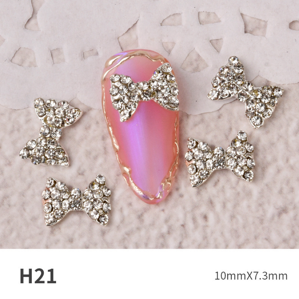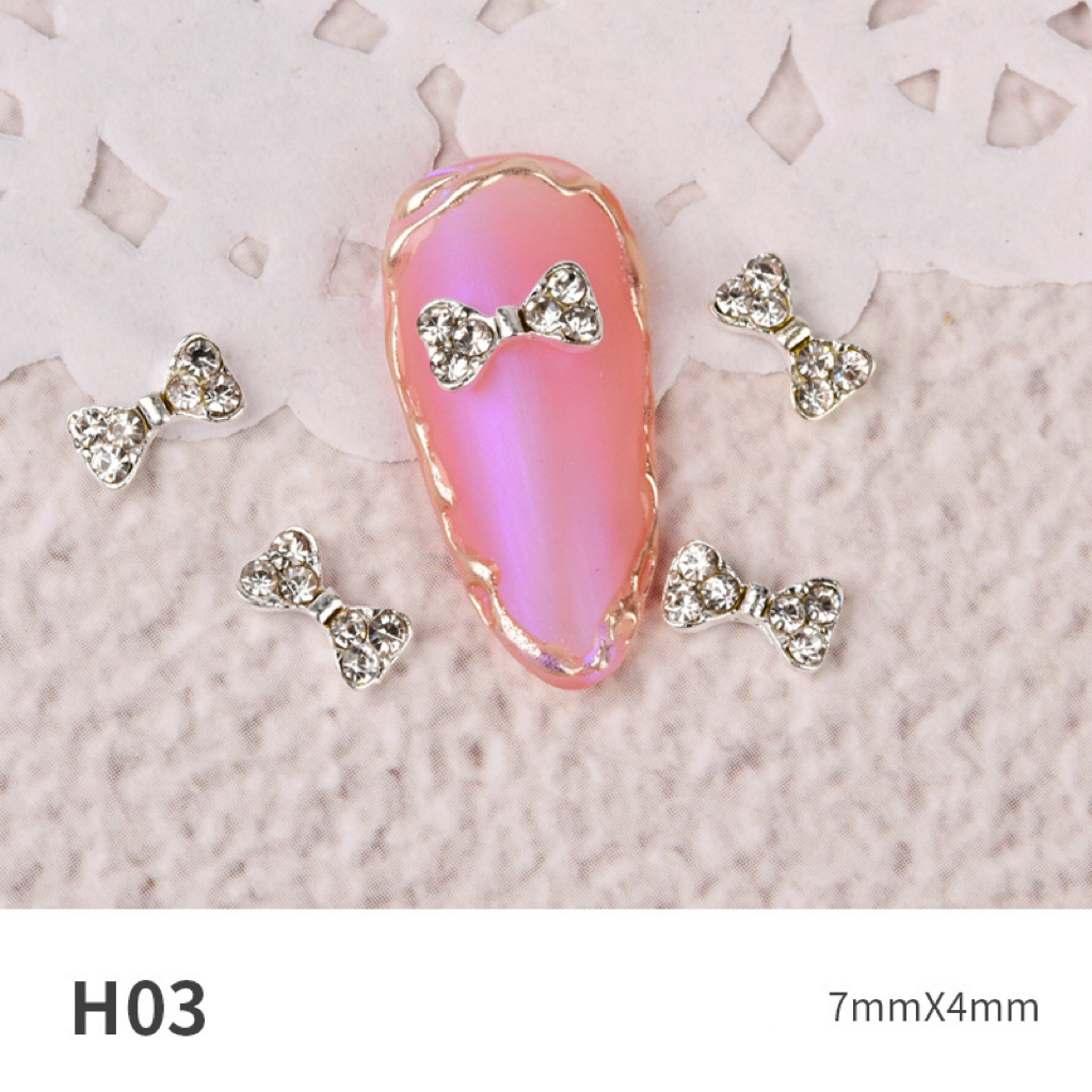Charm nơ trang sức làm móng đính rhinestone – phụ kiện nail kim loại siêu lấp lánh